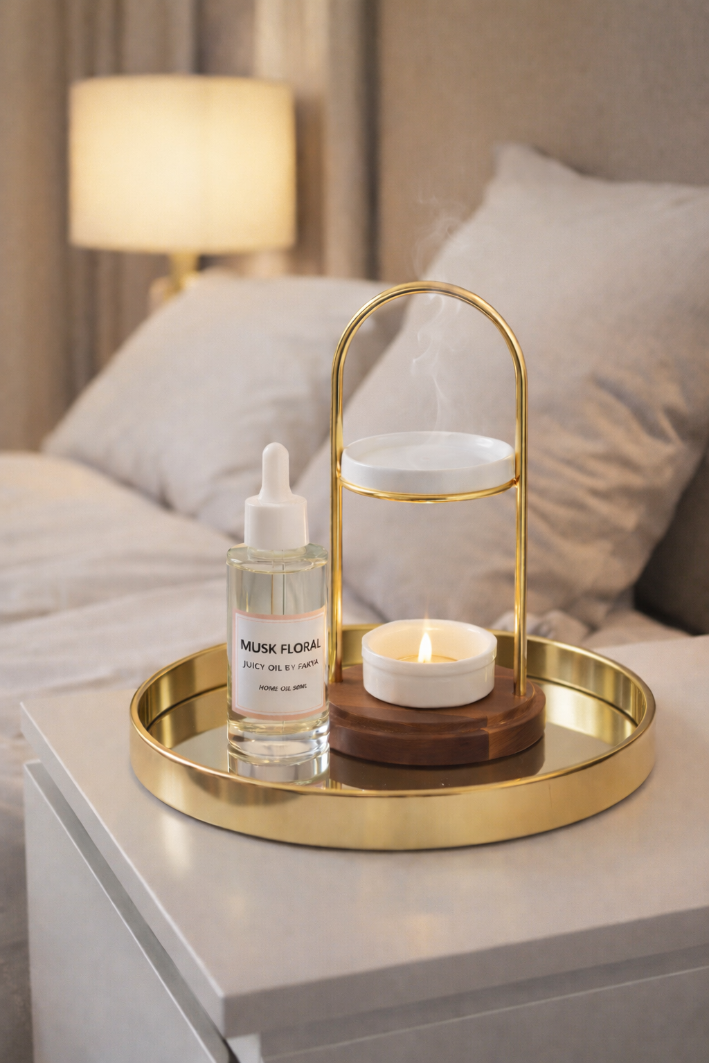 Ce brûleur à huile en bois et or est l'accessoire idéal pour votre maison ou votre bureau. Fabriqué avec des matériaux de haute qualité, il offre une façon élégante et raffinée de présenter et d'utiliser vos huiles parfumées préférées. L'alliance de l'or et du bois crée une ambiance luxueuse qui sublimera n'importe quel espace.